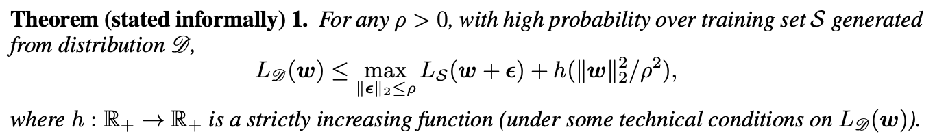 dataset을 학습시킬때 우리는 2종류의 Loss에 대해 정의를 내리고 시작한다. 먼저 training set loss인 Ls(w)는 전체 데이터 D중 S만큼 sampling된 데이터만을 가지고 관측한 Loss이며 population loss인 Ld(w)는 전체적인 global한 loss를 의미한다. 우리는 한정된 학습데이터만을 갖고 있기 때문에 Ls(w)를 minimize하도록 하지만 실제로는 robust한 모델을 만드는 것이 우리의 goal이기 때문에 Ld(w)가 최소화되는 것이 이상적이다라고 할 수 있다.