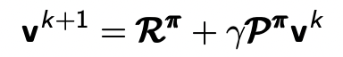 위 슬라이드를 살펴보면, 매 iteration마다, 그리고 모든 state s 에 대하여 Bellman expectation equation을 이용해 모든 value 값들을 업데이트 해주는데, 이를 반복하다보면 prediction에서 궁극적으로 학습하고 싶어하는 value 값은 vπ에 도달하게 된다. 참고로 Bellman equation 수식은 아래와 같다.