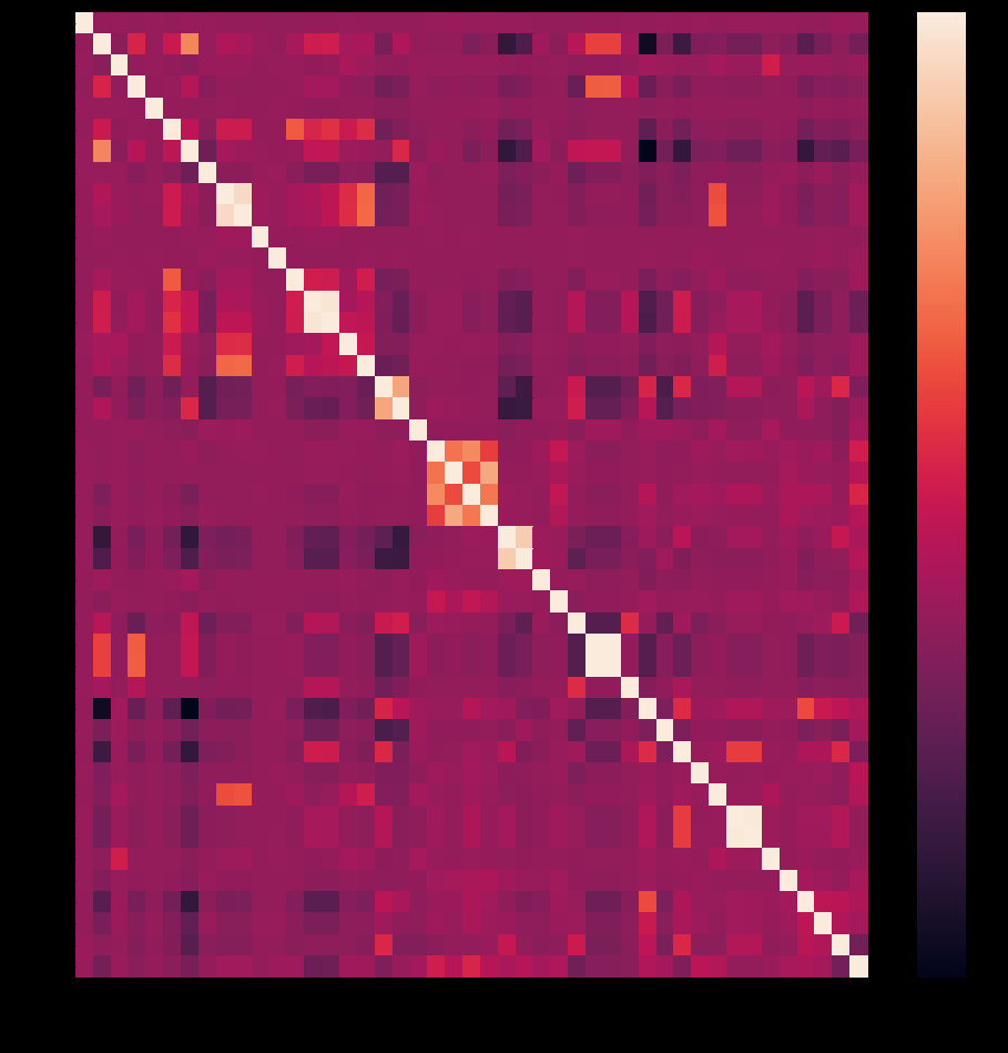 하지만 dacon에서 주최한 2021_시스템 품질 변화로 인한 사용자 불편 예지 공모전에서 제공한 데이터로 tgan을 똑같이 적용시켰을 때는 아래 그림처럼 correlation을 잘 따라줌을 발견하였다. 왼쪽이 원본 데이터의 heatmap이고 오른쪽이 원본데이터를 이용하여 만든 synthetic 데이터에 관한 heatmap이다.