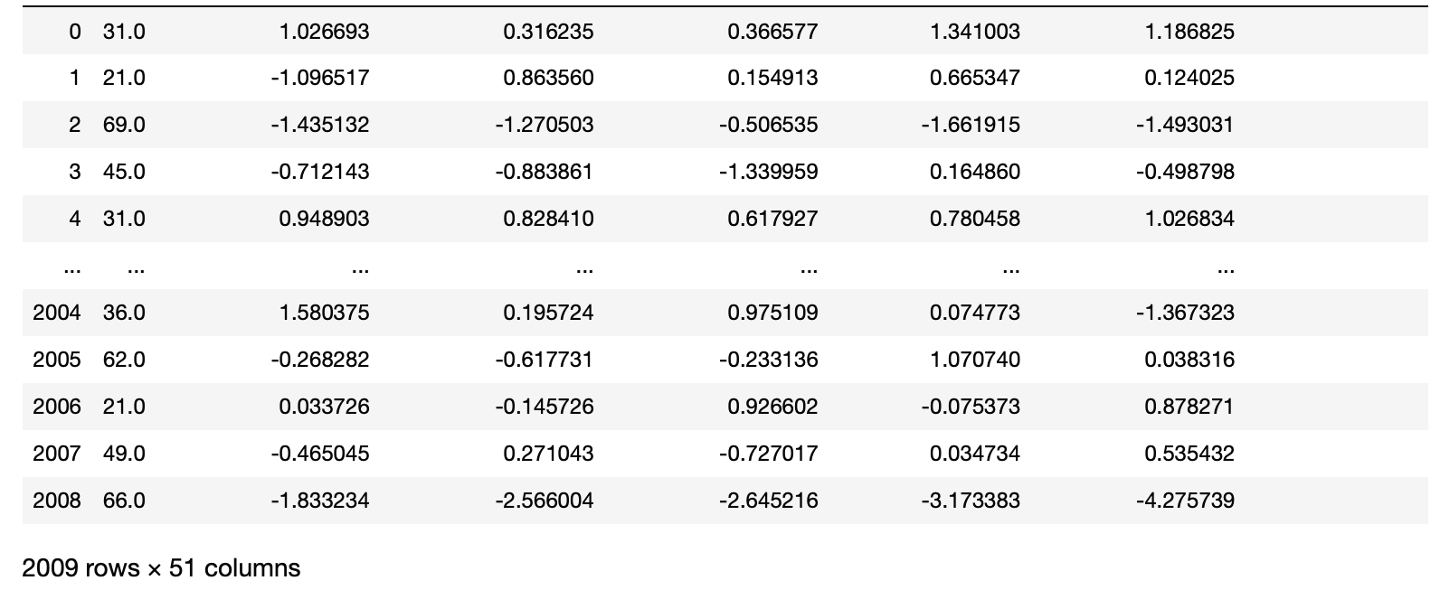 내가 현재 다루고 있는 데이터 사이즈는 꽤 크기 때문에, 먼저 RFE 방법을 통해 데이터의 feature 개수를 51로 줄이고 다시 TGAN을 적용시켜 보았다. RandomForestRegressor을 사용해 반복적으로 feature 개수를 줄여주었으며 아래와 같이 최종적으로 51 column이 되었다.